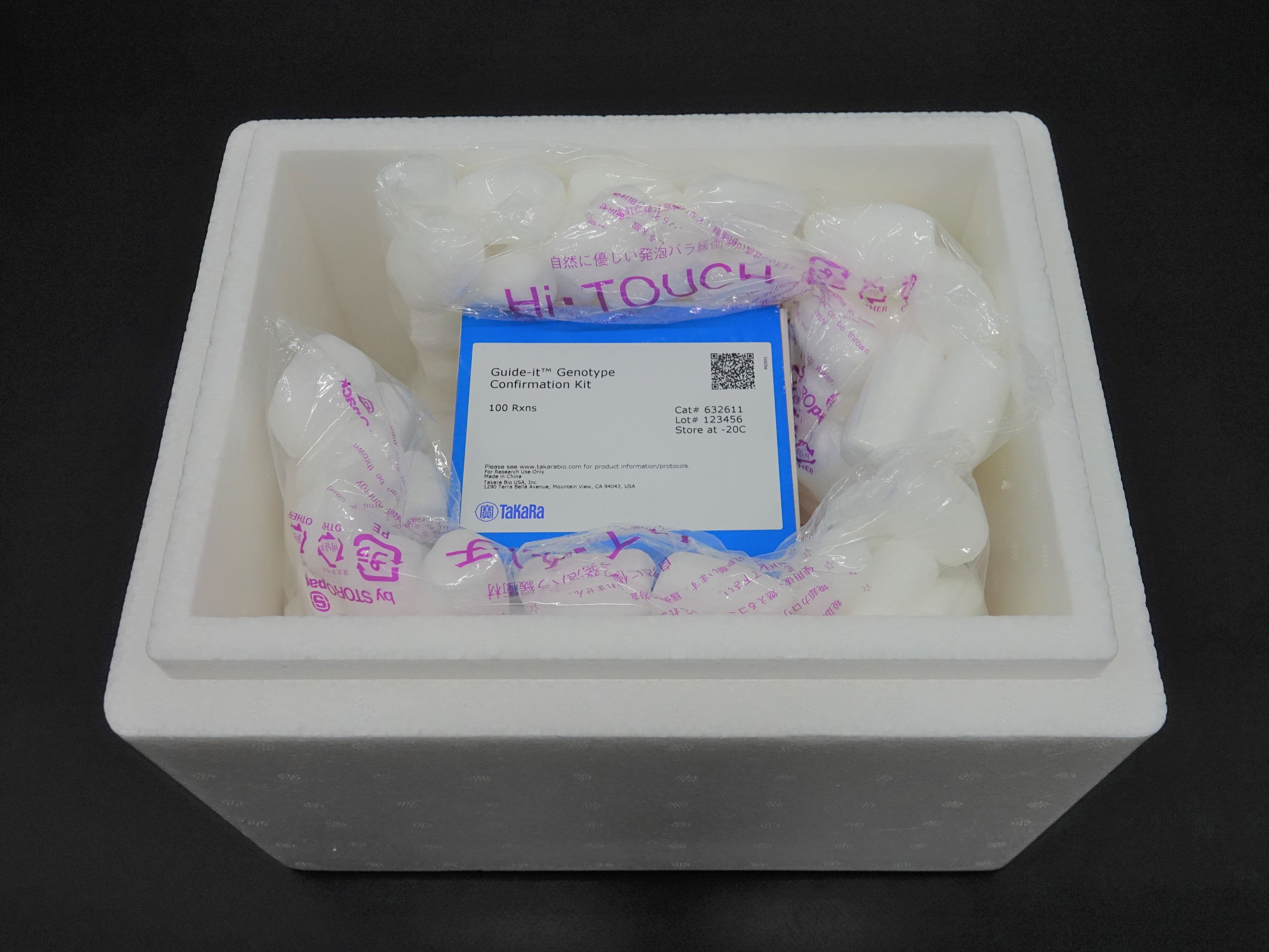 タカラバイオでは、試薬の輸送にあたって、保冷箱を使用しています。この保冷箱は、環境への配慮から、使用済み発泡スチロールや廃家電のポリスチレンから再生した(リサイクル)樹脂を100%使用しています。